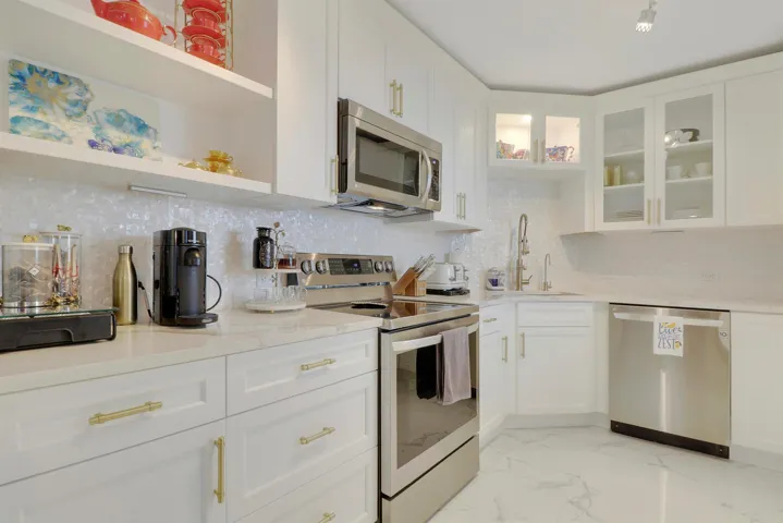 AMAZING WATER VIEWS from this newly renovated 2BR/2BA fully furnished condo in Old Port Cove. Light & bright space with beautiful finishes throughout. Kitchen features white cabinetry with quartz countertops, SS appliances and mother of pearl backsplash. Solid surface flooring throughout. Both bathrooms have been updated. Impact glass sliders. Large balcony allows for dining al fresco. Perfect spot to enjoy your morning coffee while taking in the spectacular intercoastal and ocean views. Building amenities include outdoor pool, fitness center, community room and 2-mile waterfront walking path. On-site waterfront restaurant and bar. 24-hour manned gatehouse and minutes to world class shopping, dining and airport. Don’t miss this opportunity to enjoy waterfront living – call today!