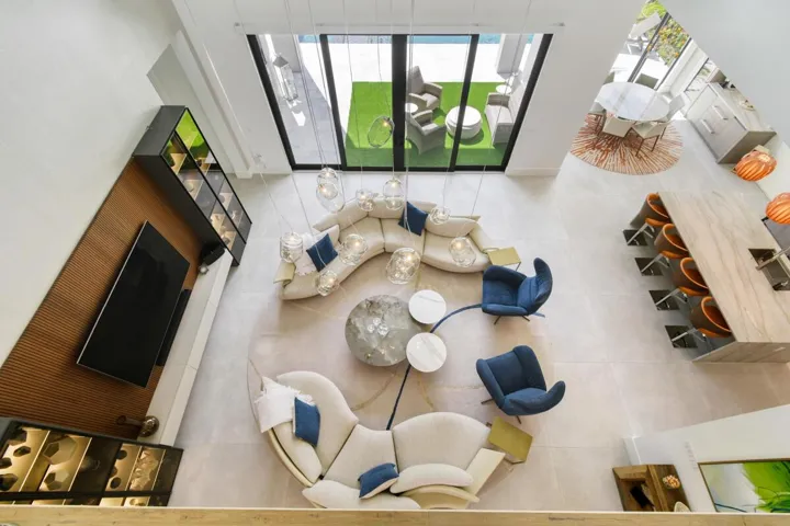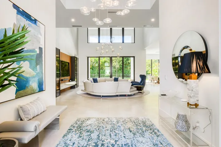Step into elegance the moment you arrive at 18432 Symphony Court, where luxury and design meet in perfect harmony. This stunning Jupiter estate is the epitome of refined living, meticulously crafted with upscale finishes and timeless sophistication.From the grand entryway, you’re greeted by imported designer chandeliers from Italy, suspended gracefully from soaring 25-foot ceilings. These radiant centerpieces illuminate a custom, backlit Italian wall unit with floating shelves, set against a stunning silk wallpaper backdrop, offering a dramatic yet elegant welcome.The open-concept layout is anchored by ravishing 48” x 48” porcelain tile flooring that flows throughout the main level.